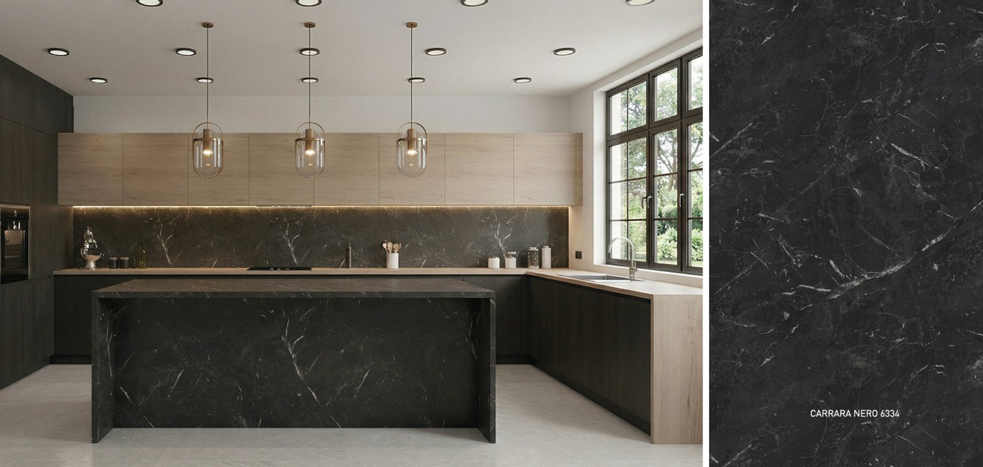 I piani Iconic Compact sono disponibili in grandi lastre per minimizzare le giunzioni e massimizzare la continuità del decorativo: